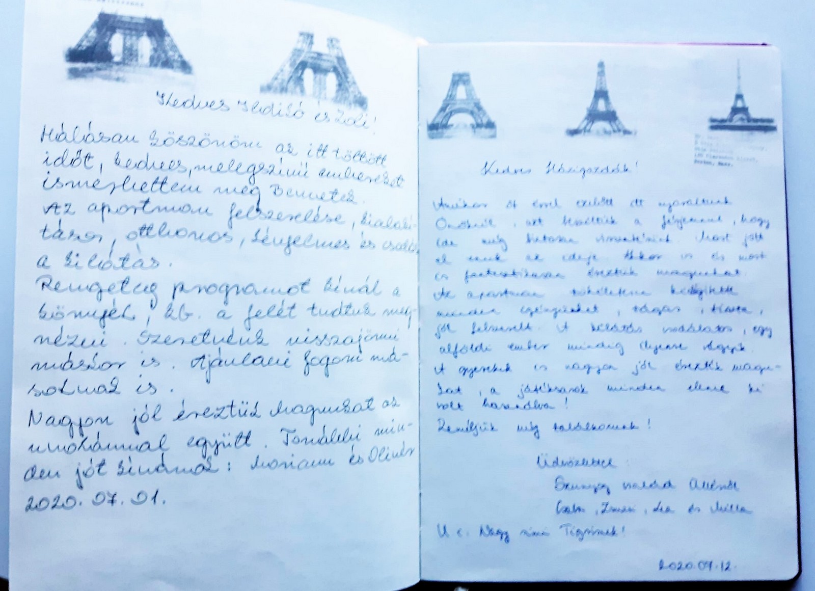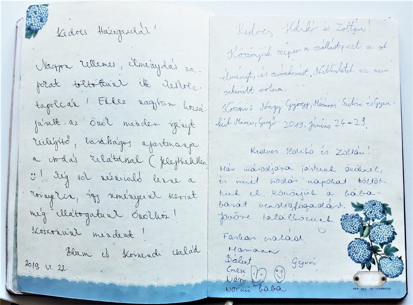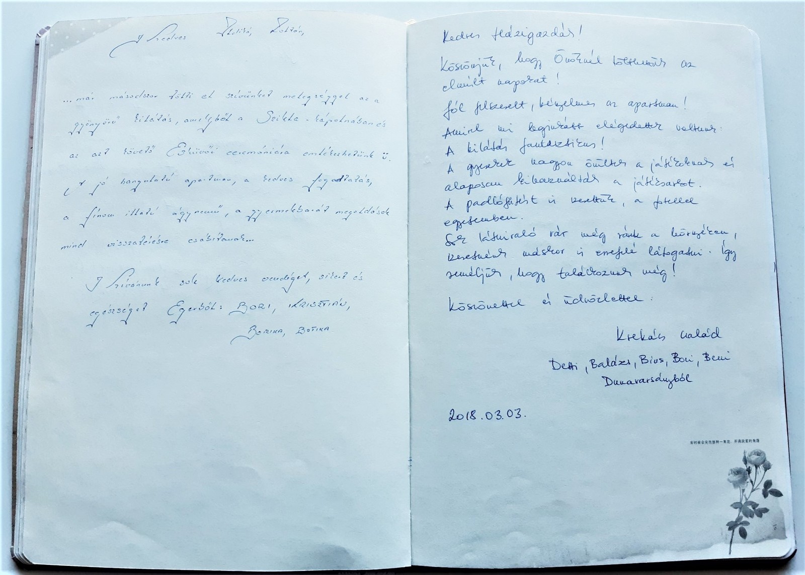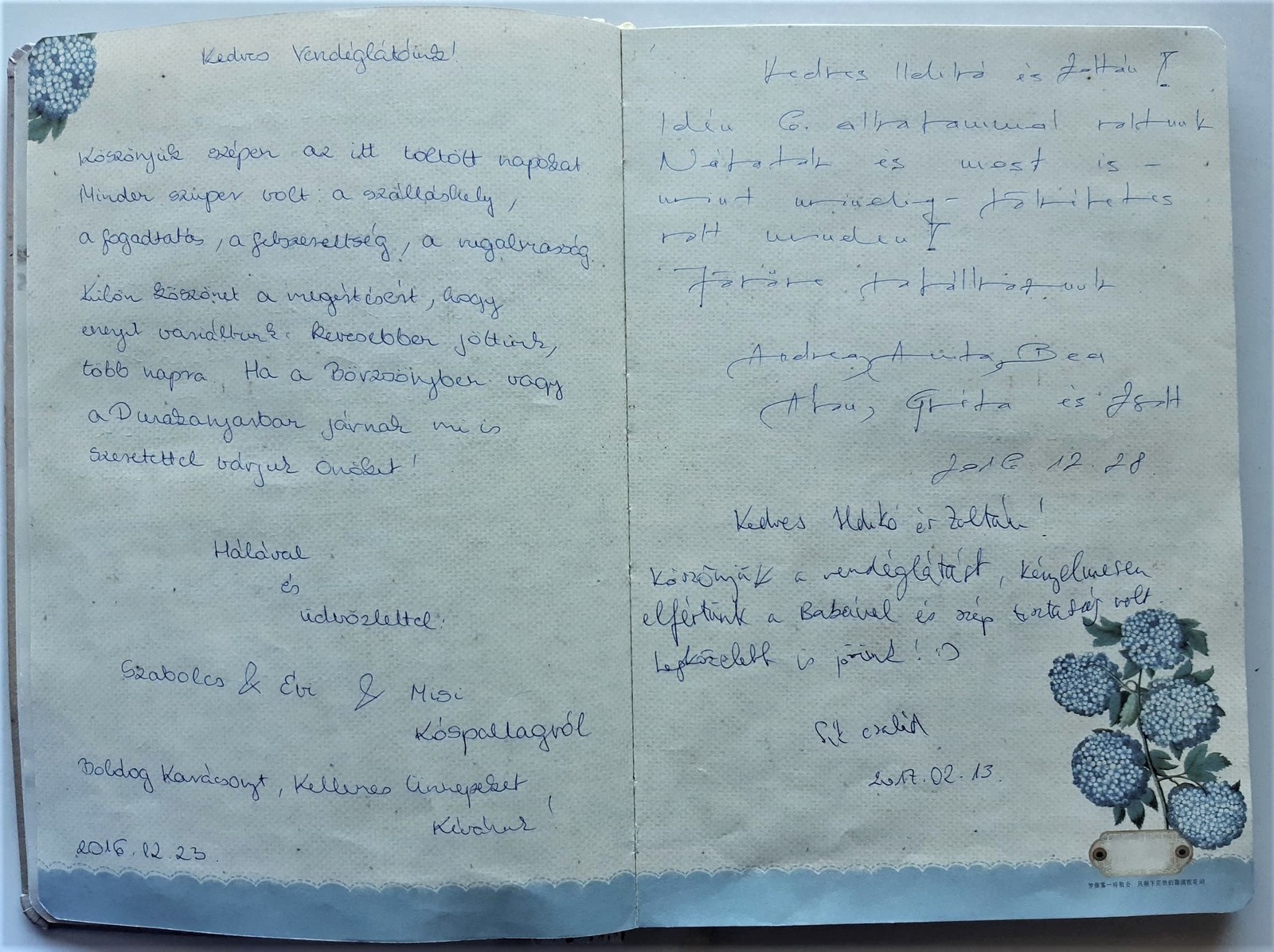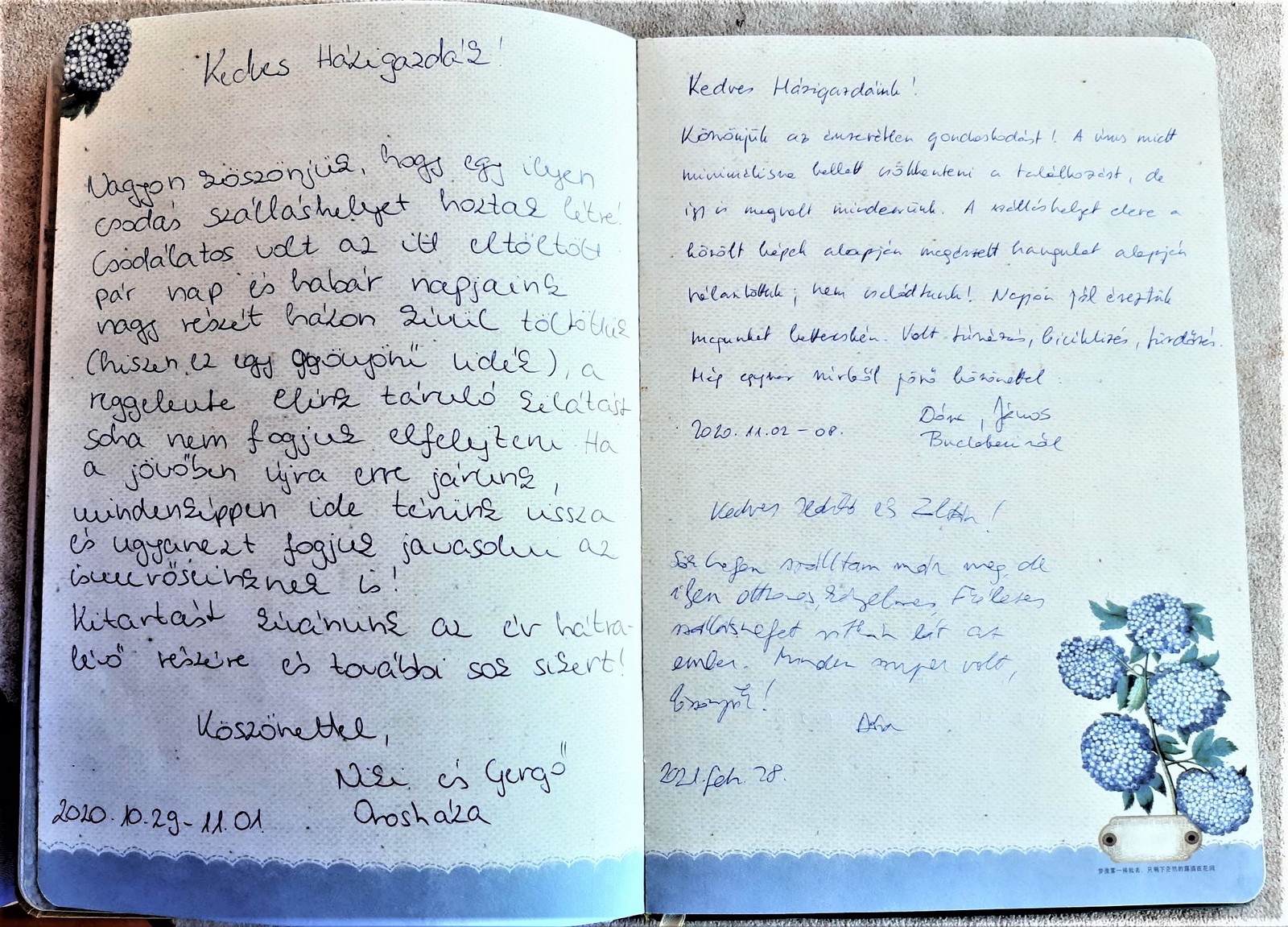 Tettünk egy-egy könyvecskét mindkét apartmanunkba, hogy vendégeink emléket, véleményt tudjanak hagyni. Mindig örömmel olvassuk, ha valaki ír néhány sort, ezeket most megosztom, lapozz bele. Régebbi írások is vannak, de mivel mindegyik nagyon kedves a számunkra, ezért egyet sem tudtam kihagyni :)
