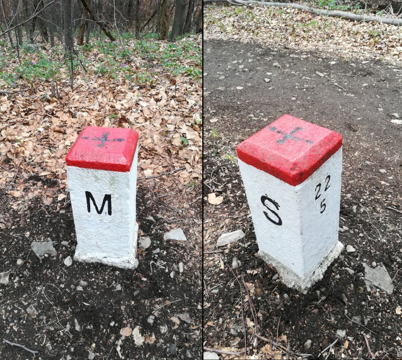 Egészen a szlovák határ mellett van, amikor felértünk, ott volt a határkő, egyik felén M betű, a másik felén pedig S.